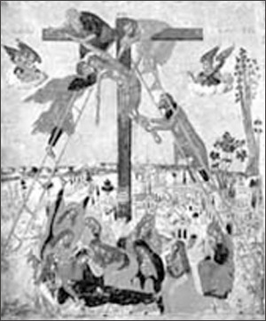 요셉은 사람을 시켜 예수님의 시신을 내리게 했다.