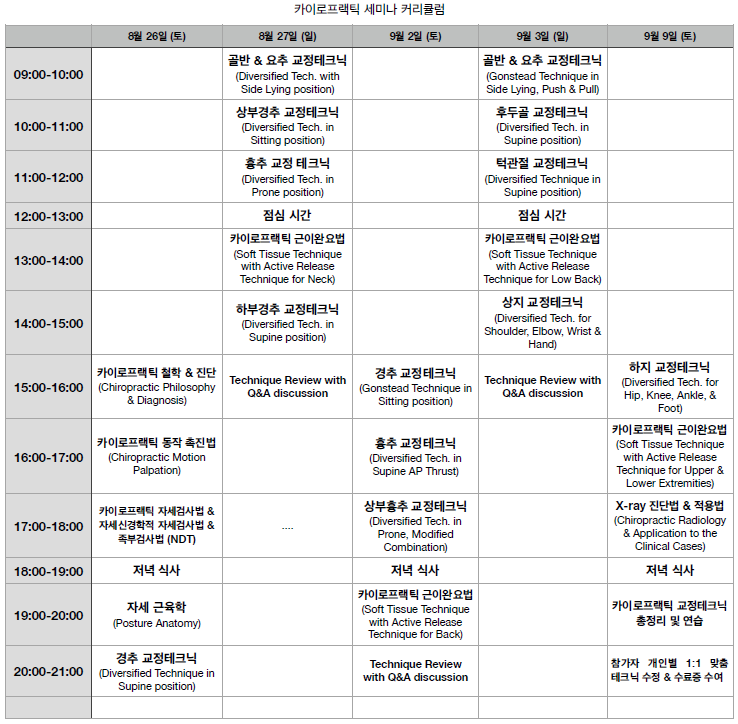 * 카이로프랙틱 재수강 시 50만원 수강.