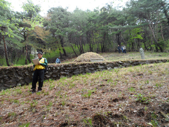 4. 묘소 앞 축대의 좌우경사를 보면 당판이 어떠했을지 굳이 말하지 않아도 짐작할 수 있다. 평시에는 그토록 균형과 안정을 말하면서 왜 이곳에서는 그토록 관대한지 알 수 없는 일이다. 풍수는 늘 일관된 기준과 원칙이 적용되어야 하는데, 그때그때 느낌으로 말하는 것이 네 번째 오류이다. 地貴平夷라 하였다.