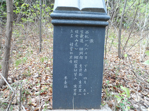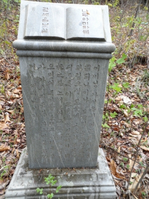 어머님 가시온지 어느듯 十七星霜 되나이다. 生前의 높으신 遺德과 깊으신 慈愛에 도로혀 不孝를 저즈른 이 不肖息들이요이다. 罔極之恩 느끼오며 그 徹天의 恨 먹음으면서 두 아들 秉珏과 秉喆은 삼가 가추지 못한 자그마한 石物 다시 세우나이다. 丁酉年(1957년) 9월 24일