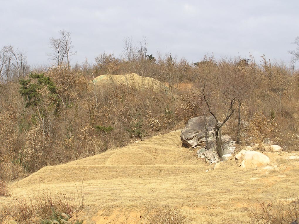 묘를 쓴 곳은 경사가 급하기 때문에 묘를 수용할 만한 평탄함과 완만함이 없다.