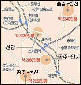 행복도시는 크게 6개 권역으로 나누어 2030년까지 23조원을 투입해서 35개 정부기관을 이전하며 50만명을 수용하는 신도시를 만들겠다는 구상이다. (이동 공무원 : 10,300명)