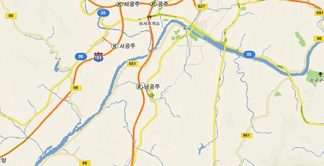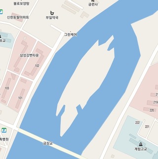 1. 국내 옛 도읍지 사례 (1) 공주(웅진) 180도/2회/0 시내 중심지를 환포한 강의 각도/ 강의 길이 25km 이내에서 90도 이상 만곡의 횟수를 위성사진으로 파악한 근사치/ 강 중심에 있는 섬(羅星)의 갯수. 이것은 측정자에 따라 약간의 차이가 있을 수 있으며, 이하 모두 동일한 방법임. 475년부터 538년까지 63년간 백제의 두 번째 수도였으며, 정안천과 금강이 만나 감싸주는 지역이다. 그러나 금강이 환포는 하였으나 그 형태가 원만하지 못하고 촉박한 모습이다. 또 장기면에서부터 들어오는 물길은 급하고, 파구 또한 한차례의 만곡에 그쳐 빠르게 흘러나가고 있다.