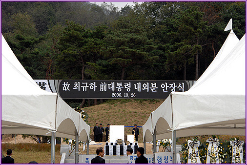 최규하 전 대통령 묘역은 '明堂' [YTN TV 2006-10-25] [앵커 멘트] 고 최규하 전 대통령이 내일 오후 국립대전현충원 국가원수 묘역에 안장됩니다. 국가 원수로는 처음 안장될 국립대전현충원 국가원수 묘역을 이문석 기자가 먼저 다녀왔습니다.