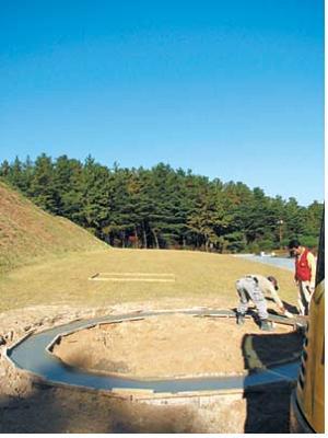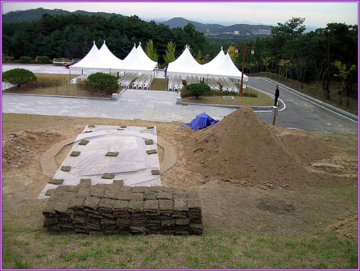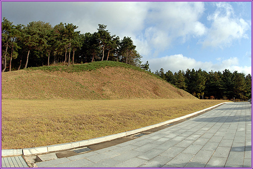 주산으로 부터 내려오는 용맥을 절단함으로서 지맥이 끊긴것이 아쉽고요 자연스러운 묘역조성이 되지않고 편리함과 보기좋음에 우선한 묘역조성에 문제가 있군요 |