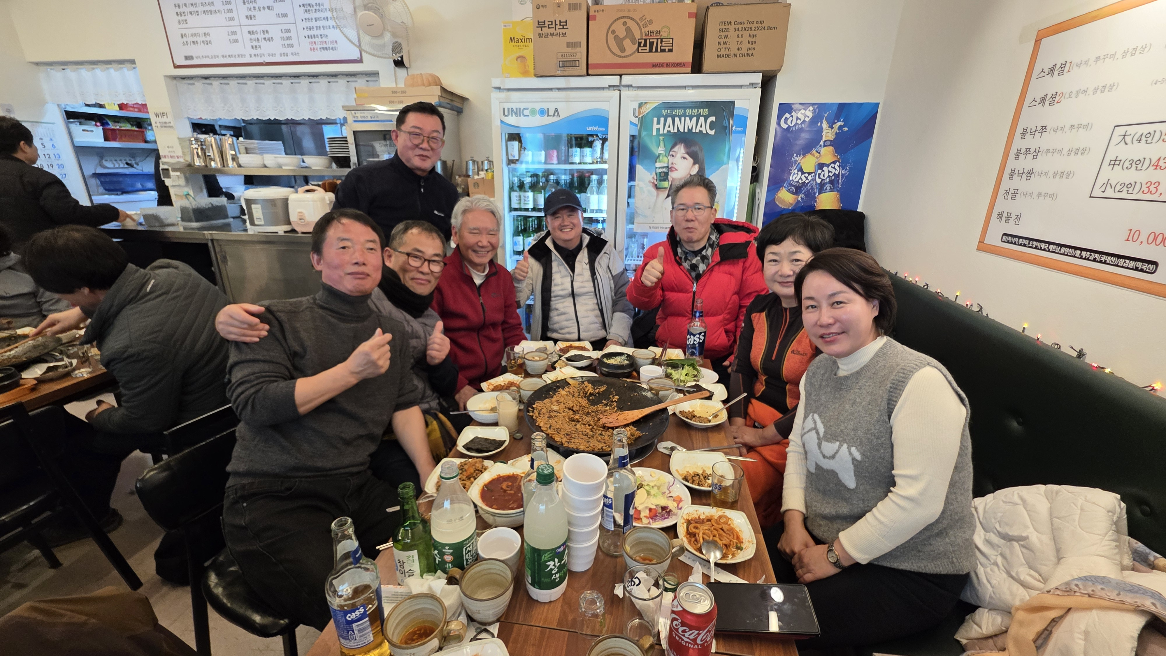 2025년 12월 송년답사는 부산, 여수, 전주, 당진 등에서 45명이 참석하였다.