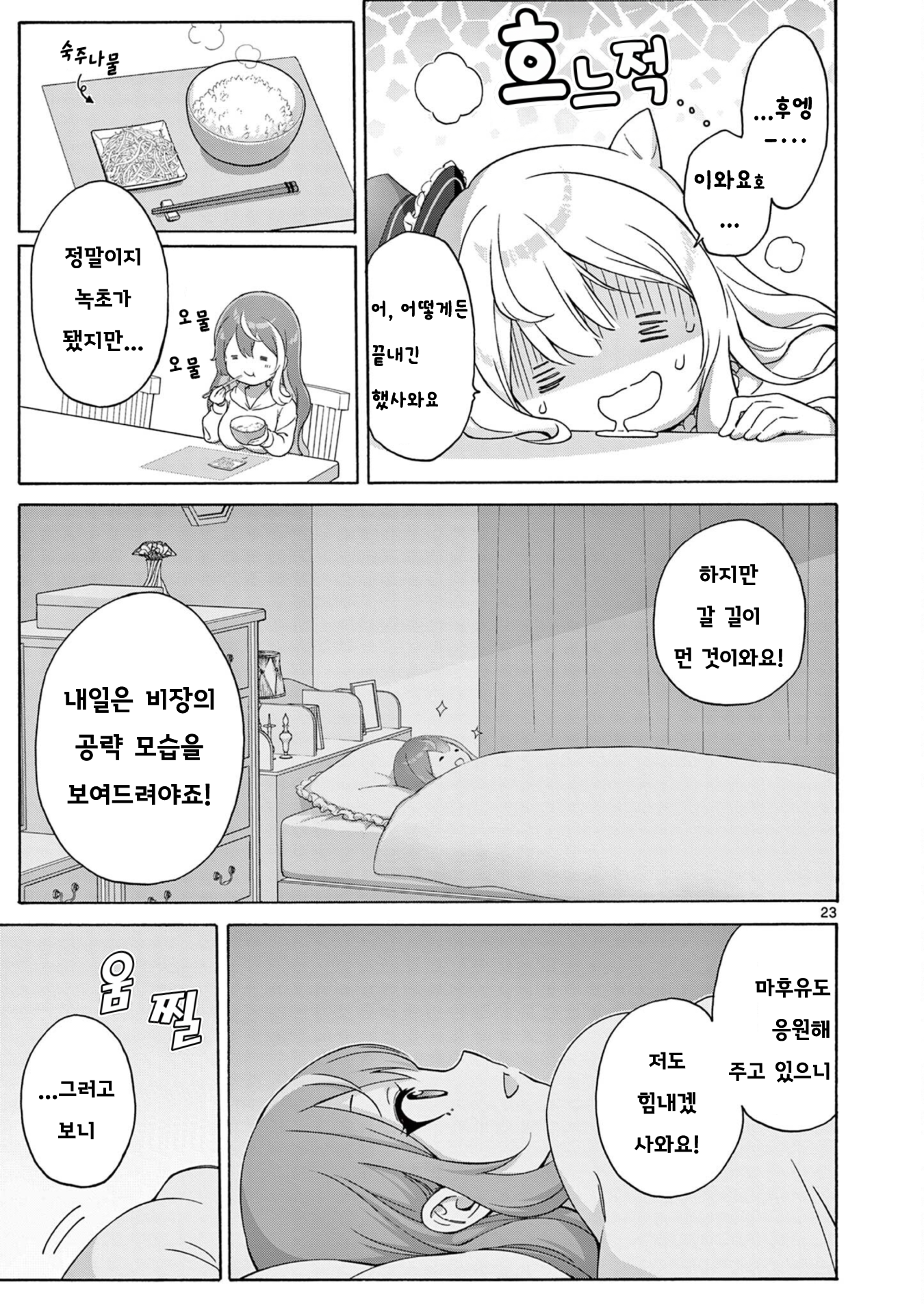 밥에 숙주나물... 하층을 공략하고 있는데 너무 빈곤...