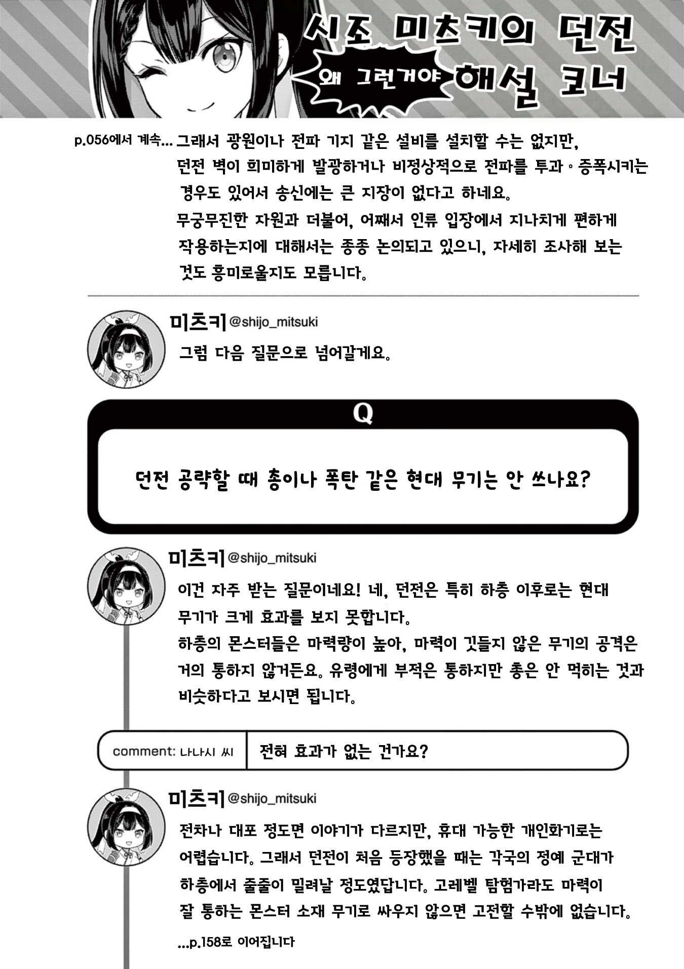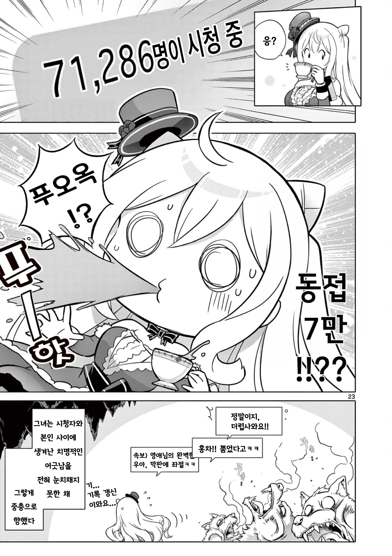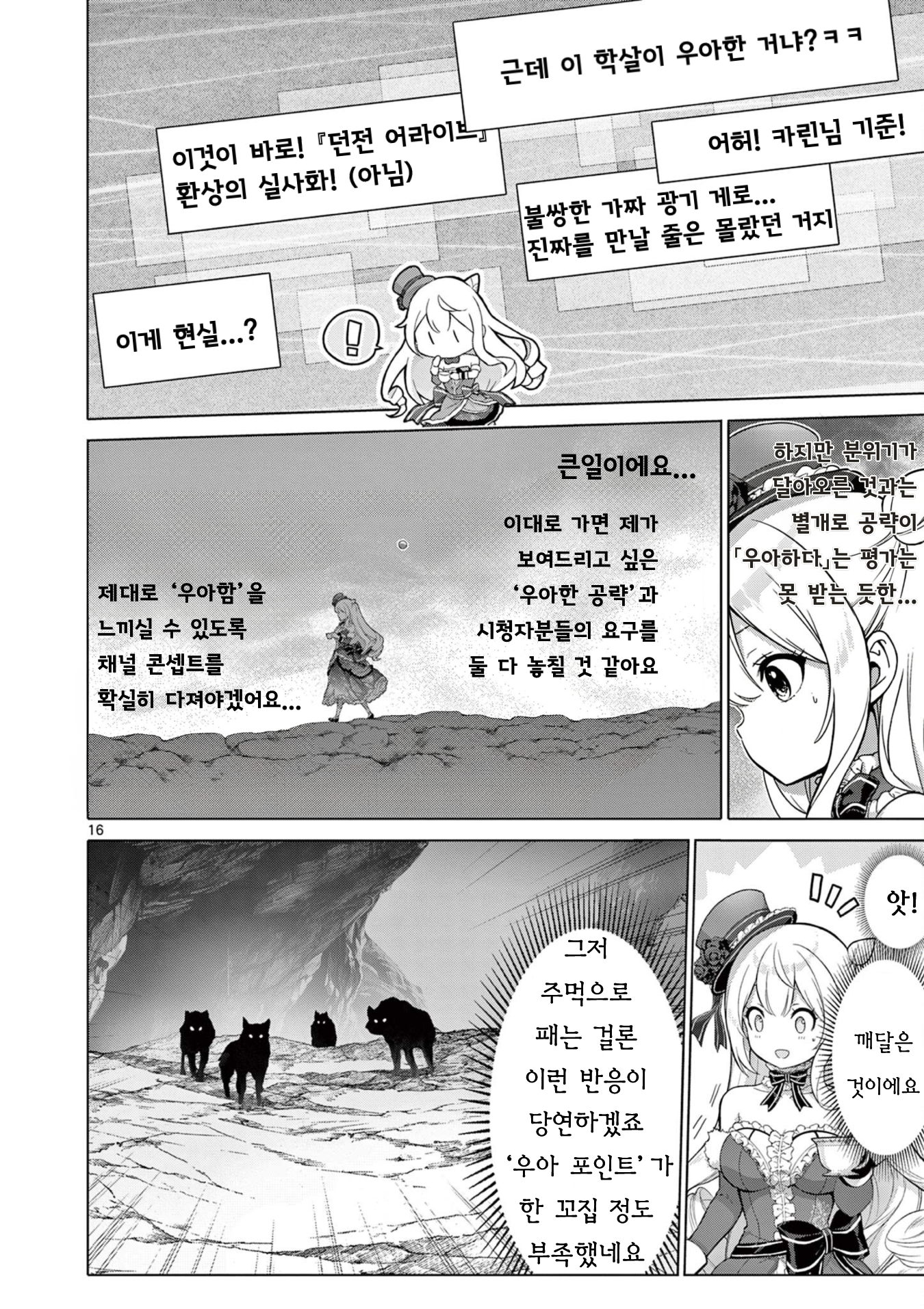 던전 하꼬 영애 스트리머, 관종을 박살내고 전설이 되어버렸사와요!? 4-2화 작성자문도 박사|작성시간26.03.21|조회수704 목록 댓글 19 글자크기 작게가 글자크기 크게가 1-1화, 1-2화, 1-3화, 2-1화, 2-2화, 3-1화, 3-2화, 4-1화, 4-2화,1. 개인적으로 게로가 줘팸 당하는 초반과 완벽한 회피가 1권의 3대 하이라이트 중 하나라고 생각합니다. 2. 근대무기가 통하지 않는 이유 = 마력이 없어서, 그렇다는 건 카린은??? 항상 응원해 주시는 여러분께 최대한의 감사를! 다음검색 현재 게시글 추가 기능 열기 북마크 공유하기 신고 센터로 신고 댓글 댓글 19 댓글쓰기 답글쓰기 댓글 리스트 작성자사타나 | 작성시간 26.03.22 늑대들도 어이없어서 서로보는게 웃기네 작성자Dif2541 | 작성시간 26.03.22 번역 감사합니다. 작성자달달한인생 | 작성시간 26.03.23 번역 감사합니다 작성자나니아 | 작성시간 26.03.23 번역 감사합니다. 작성자Amethyst | 작성시간 26.03.24 번역 감사합니다. 댓글 전체보기