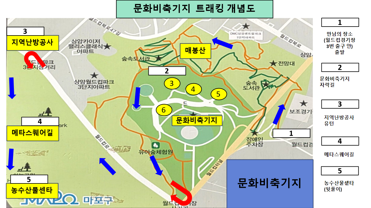 유아숲 → 지역난방공사 → 화장실(간식타임) → 메타스퀘어길 →