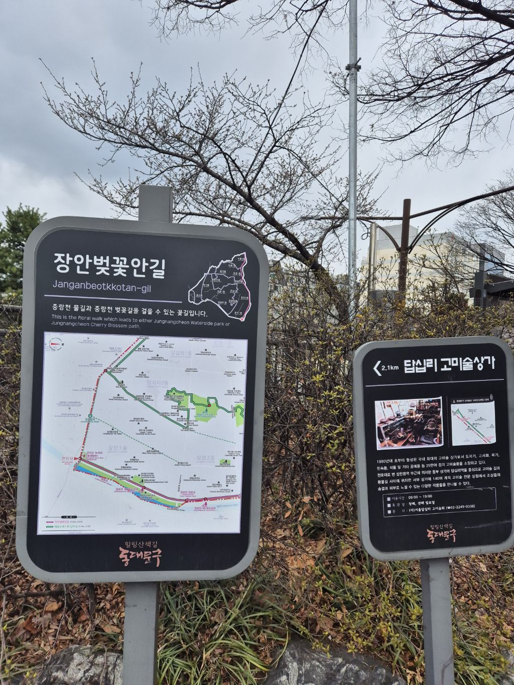 일 정 표장한평역 →장안천 벚꽃길 →겸제교 →면목역(식당)