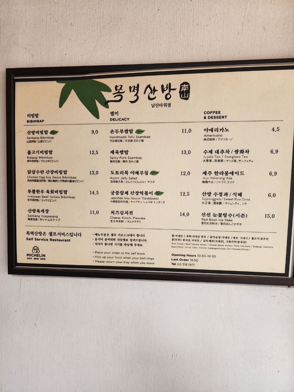 ● : 목멱 산방 식당에 서는 주류 판매 하지 안아요.