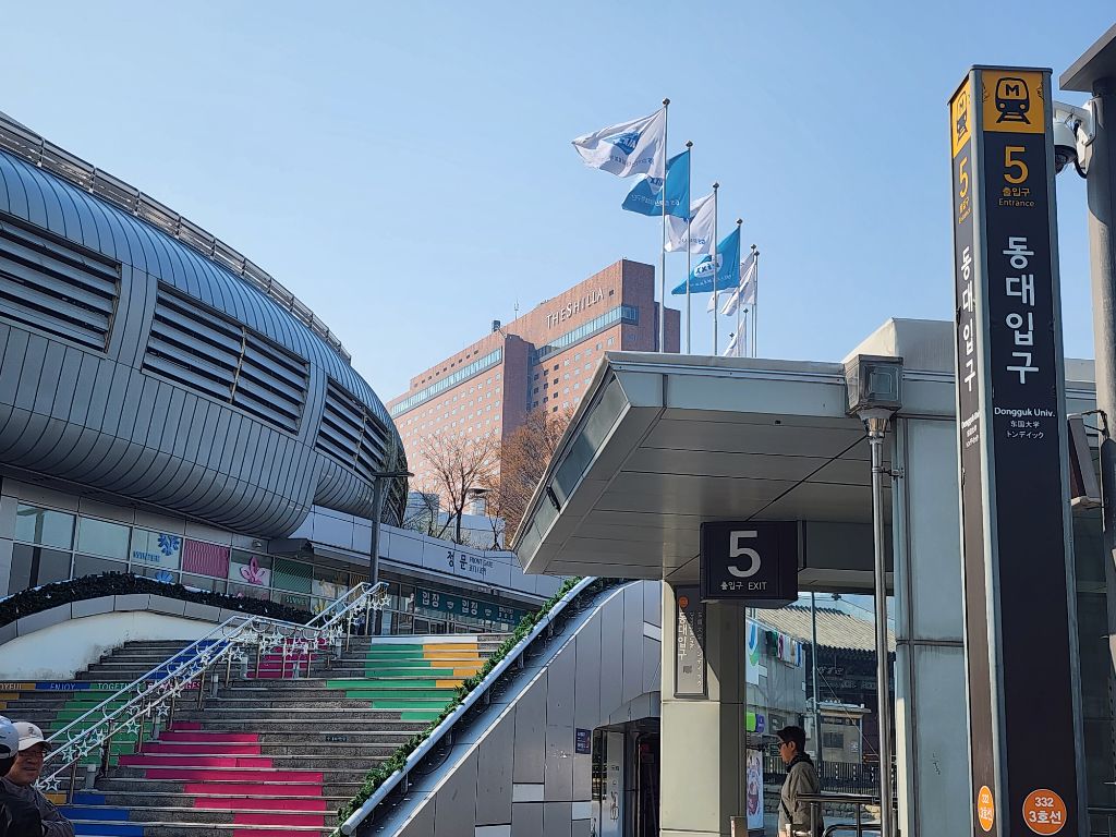 만나는곳 : 전철 3호선 동대역 5번출구 밖에서 장충체육관 앞에서