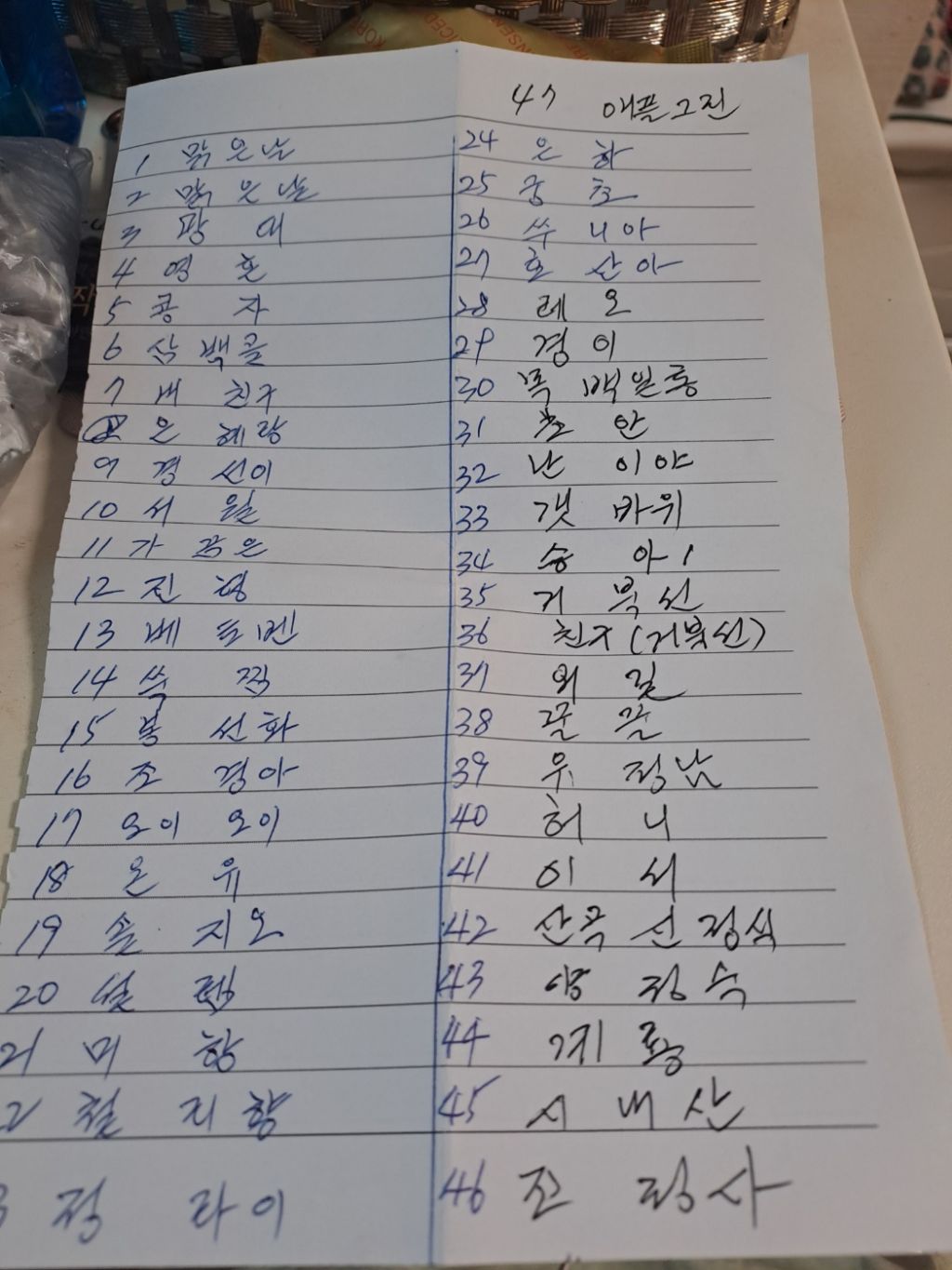48.할리 49.서울아씨 50.김은지 51.멍청이 52.둥글