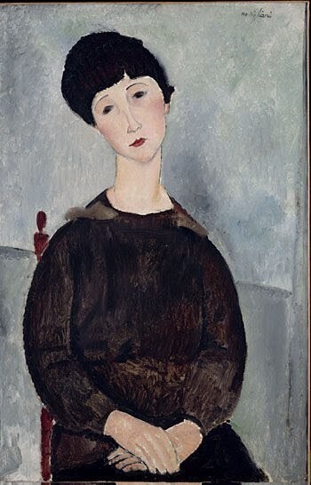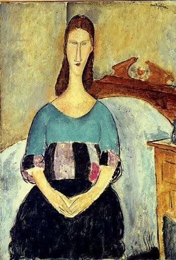 앉아 있는 잔느 에뷔테른느 (1918년, 이스라엘미술관)