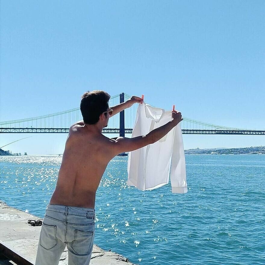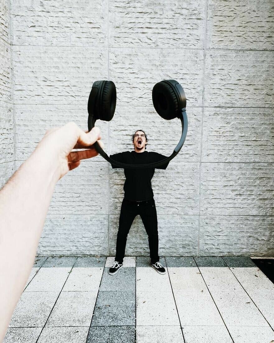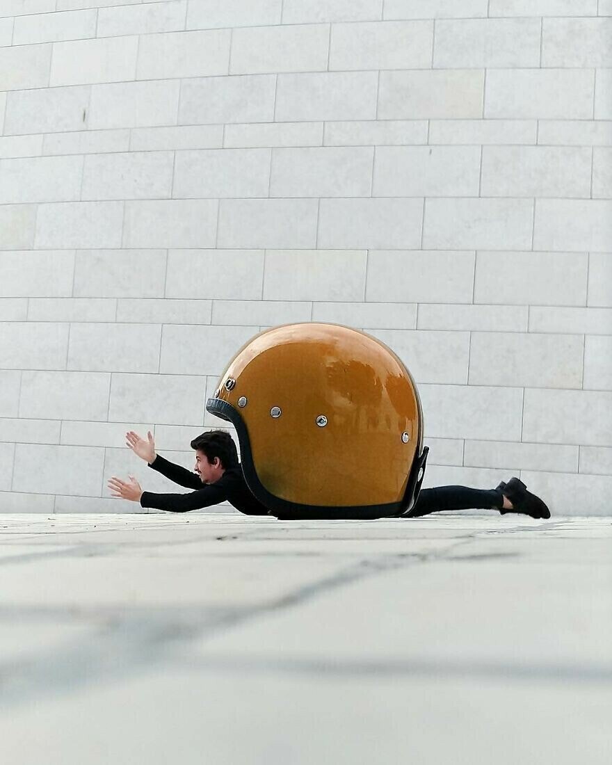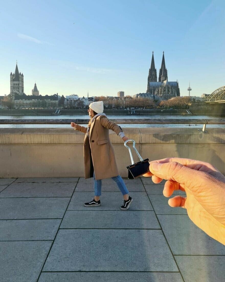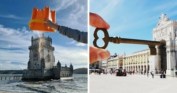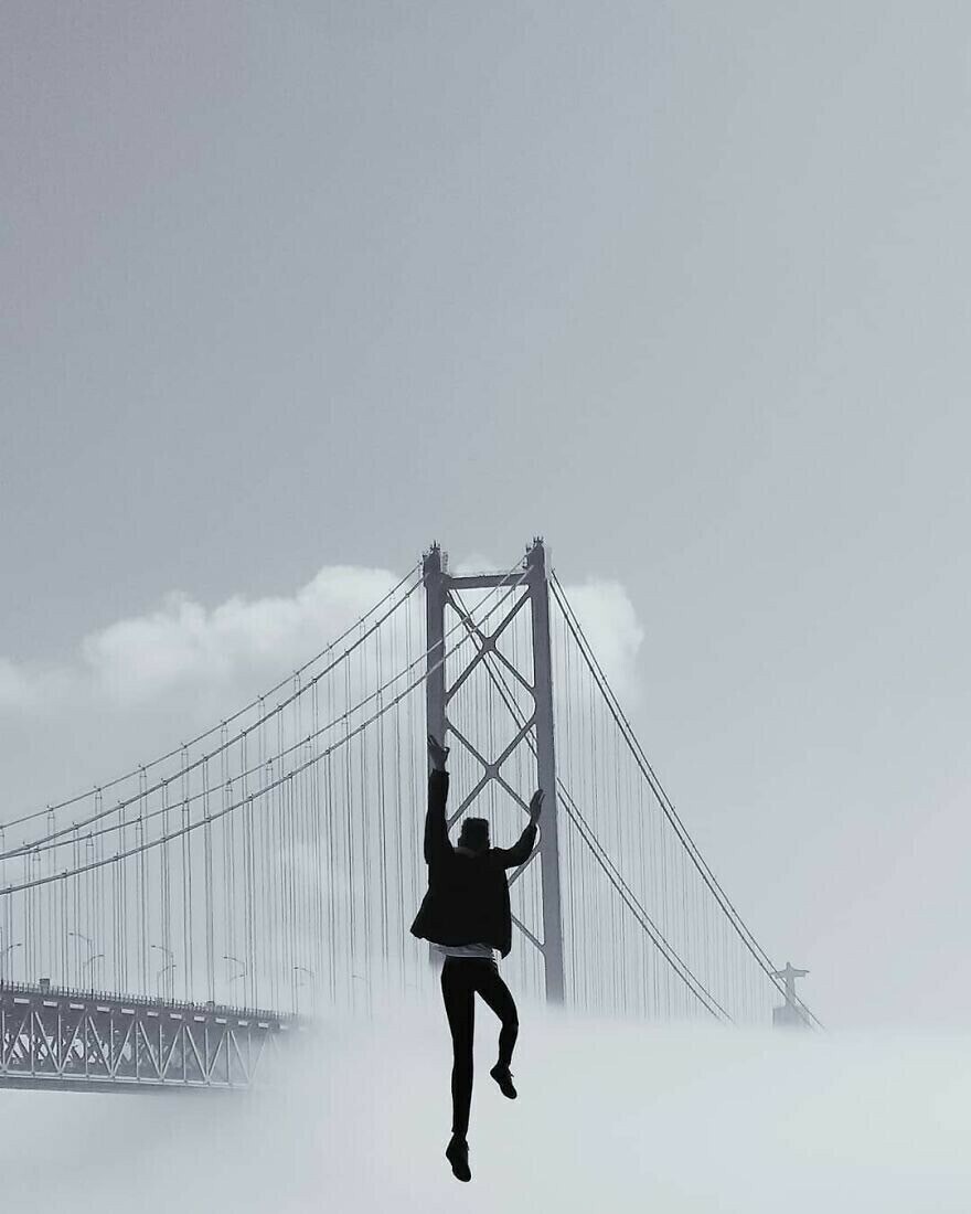 그는 단순한 다리와 풍경을 초현실적이고 환상적인 장소로 바꾸고 열쇠, 과일, 어린이 장난감등을 마법의 소품으로 바꿉니다. 모든 사진에는 서로 다른 이야기와 아이디어가 있습니다. 우리가 익숙한 지루한 세상을 새롭고 재미있는 방식으로 볼 수 있도록 도와줍니다