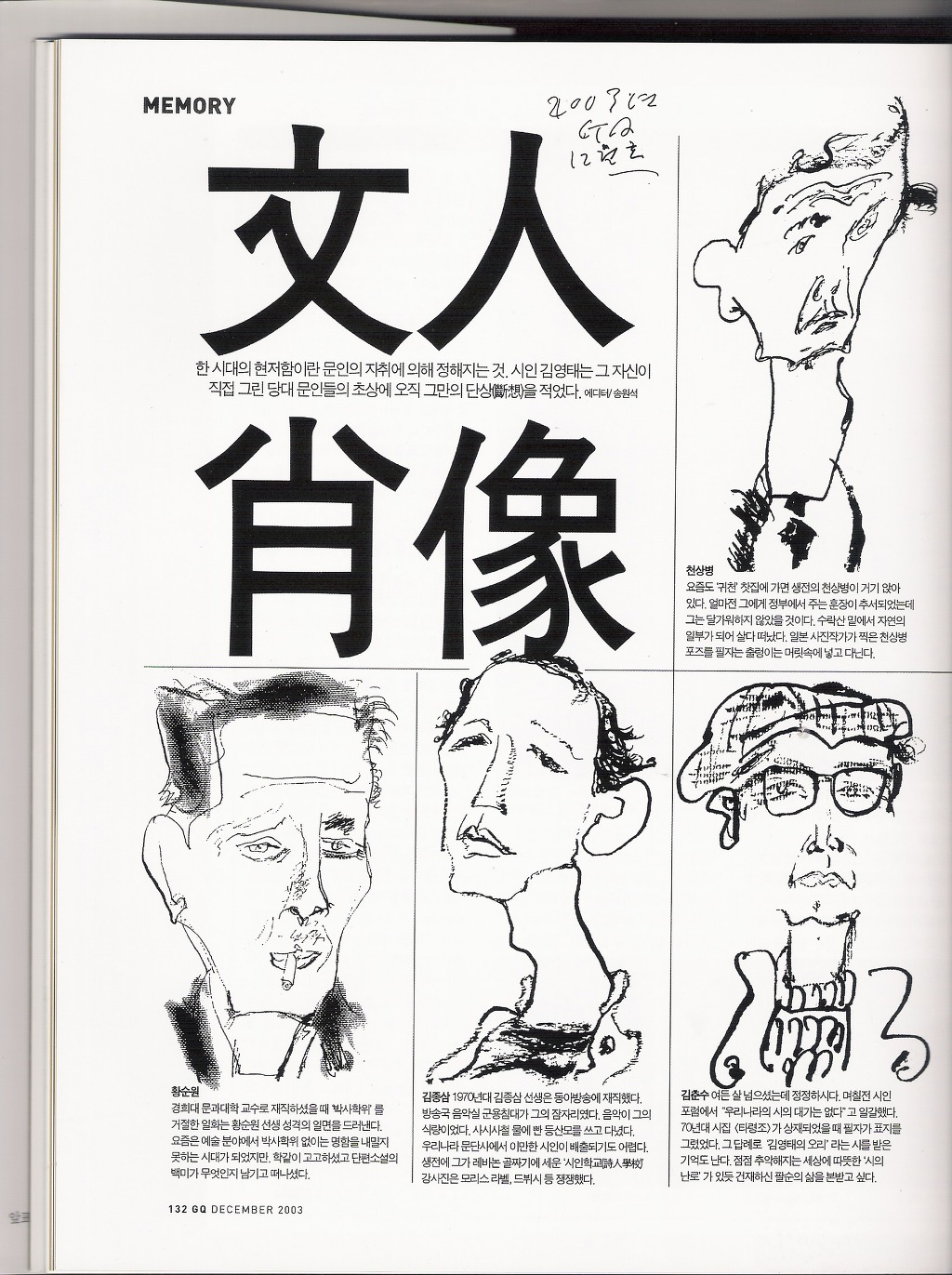 김영태 화백의 예술인 초상화(1,000 여명의 시인, 소설가. 무용가, 음악가의 초상화를 우리나라 최초로 그리다)