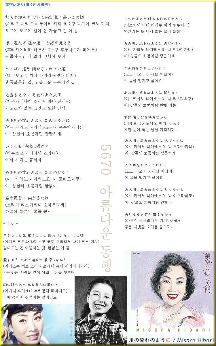 그런데 미소라는 이 노래를 부르고 얼마 뒤 죽었다지요... 강물 흐름과 같은 인생입니다 -