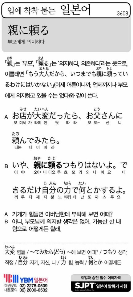 작성자아모르파티 작성자 본인 여부 작성자 작성시간 21.01.13 もう大人だからいつまでも親に頼っている