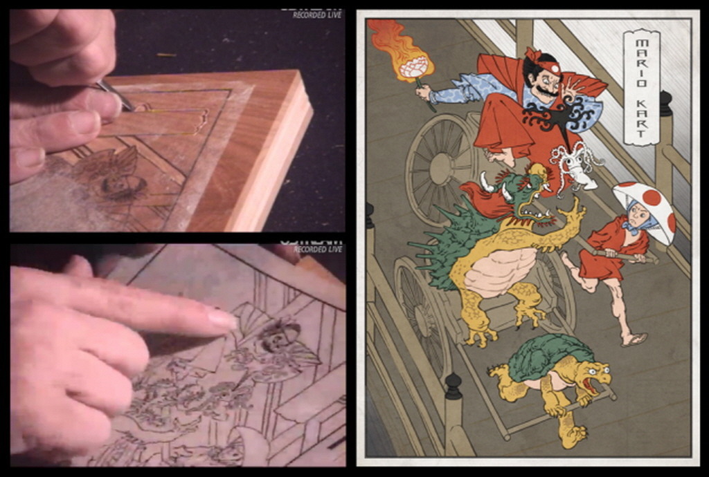 우키요에시가 그린 디자인을 목판에 파는 일은 '호리시'(彫師)가 맡으며,