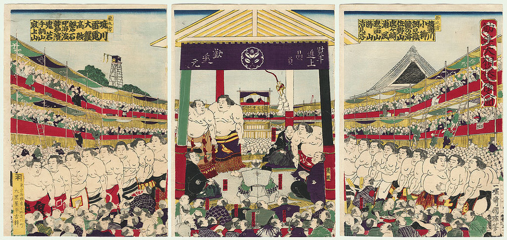 스모를 묘사한 그림. 스모 역사들의 브로마이드 등이 있었다.