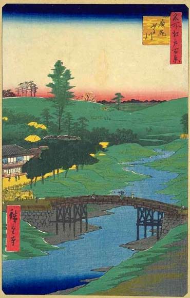 [명소에도백경]은 독특하고 대담하며 파격적이지만 안정을 잃지 않는 구도, 서정성을 듬뿍 머금은 풍경,