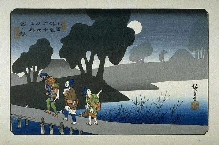 아마도 다색 목판화의 특성상 미묘한 명암표현을 하기 힘들어서 였겠지만 우키요에의 화면처리는 평면적입니다.
