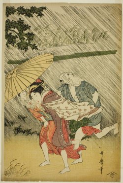 전통적인 우키요에 작가들과 마찬가지로 유곽의 여인들이나 가부키 배우들을 주제로 삼았던 그는