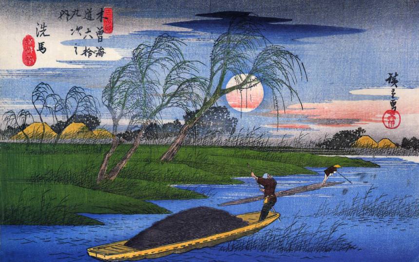 우키요에 작가들은 2차원 평면에 공간감을 주기 위한 자질구레한 시도 없이 단순한 선과 색으로
