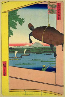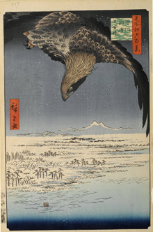 아래의 히로시게의 판화와 구성이 비슷합니다.