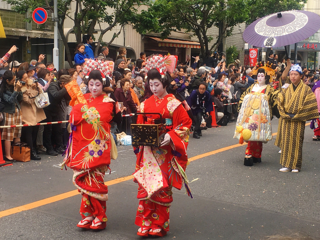 그 시대에는 매일 아사쿠사 인근의 요시와라 거리에서 행진을 볼 수 있었다