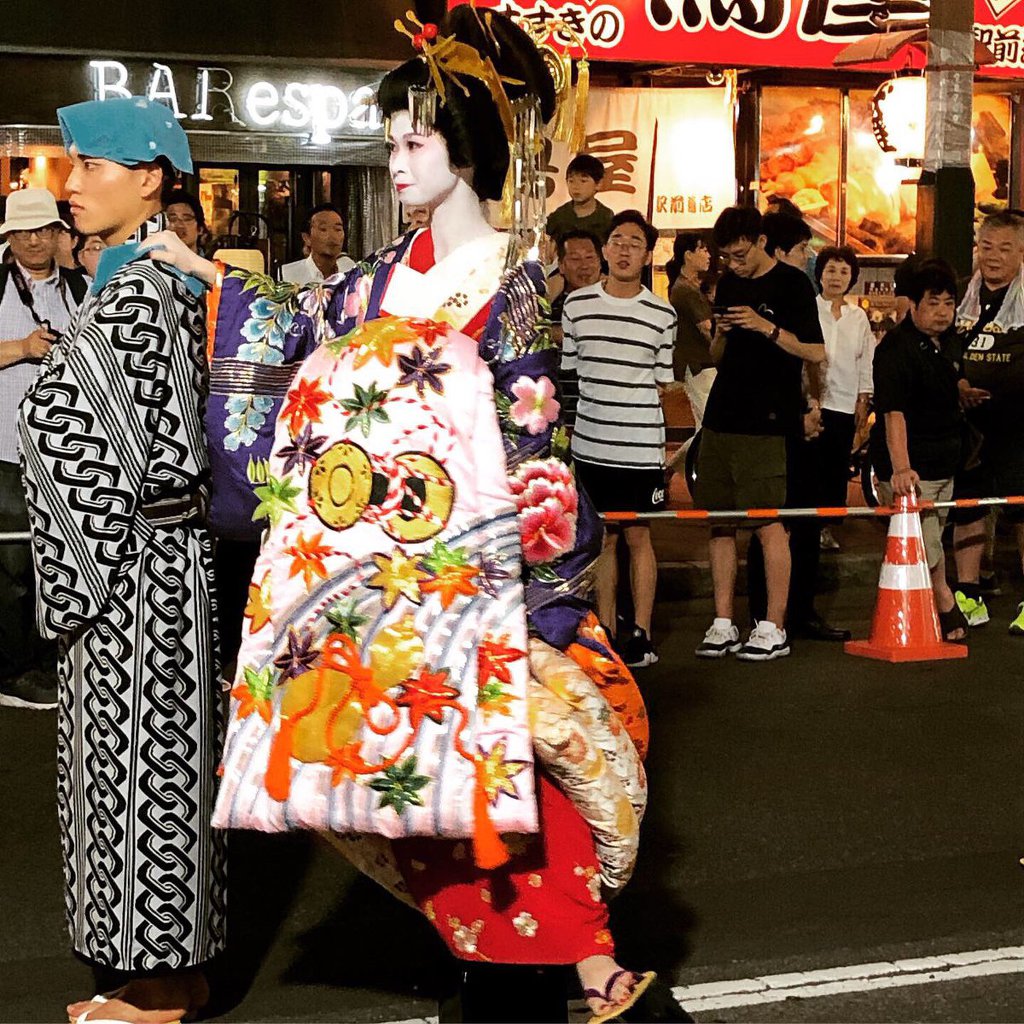 by local kids, food stalls and a flea market but the main event is the Oiran Dochou Procession.