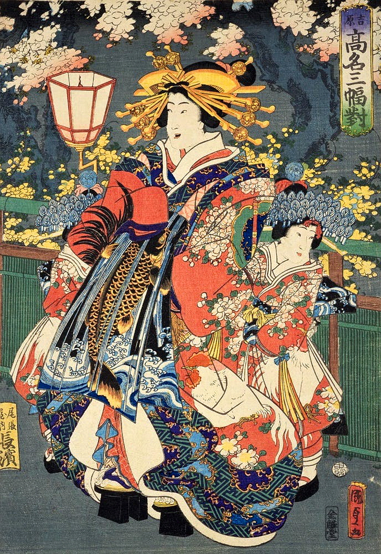 요시와라의 오이란 들은 우키요에 미인화의 주요 소재였다
