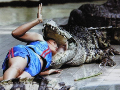 어머, 여인도 악어 아가리 속에 머릴 박네요~