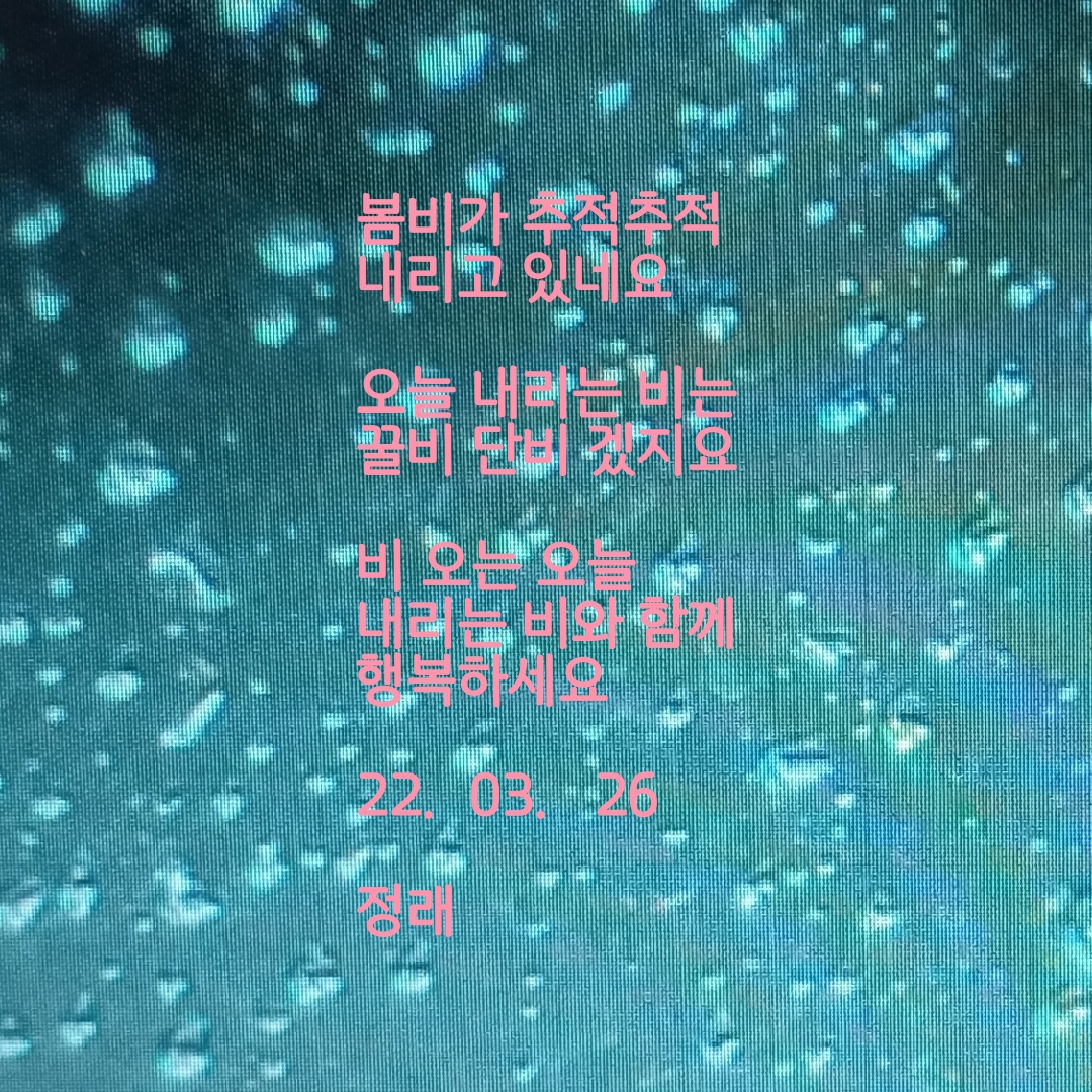 작성자조은희 작성시간 22.03.27 비온뒤의 상쾌함