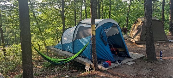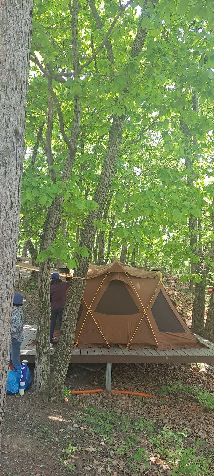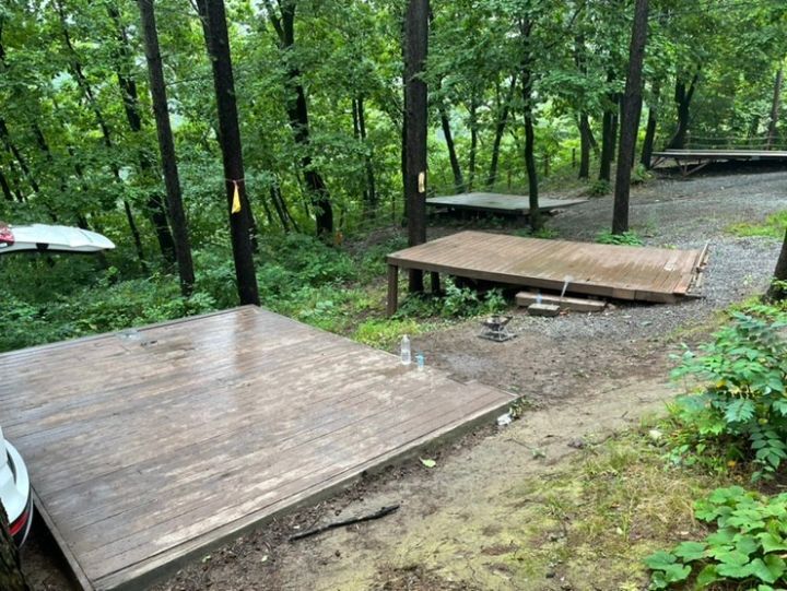 참여인원이 4명씩 3팀으로 데크3개를 빌려 텐트설영