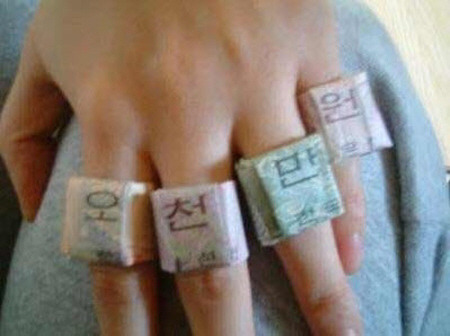 만칠천원을 접어서 손가락에 끼우면 됩니다.