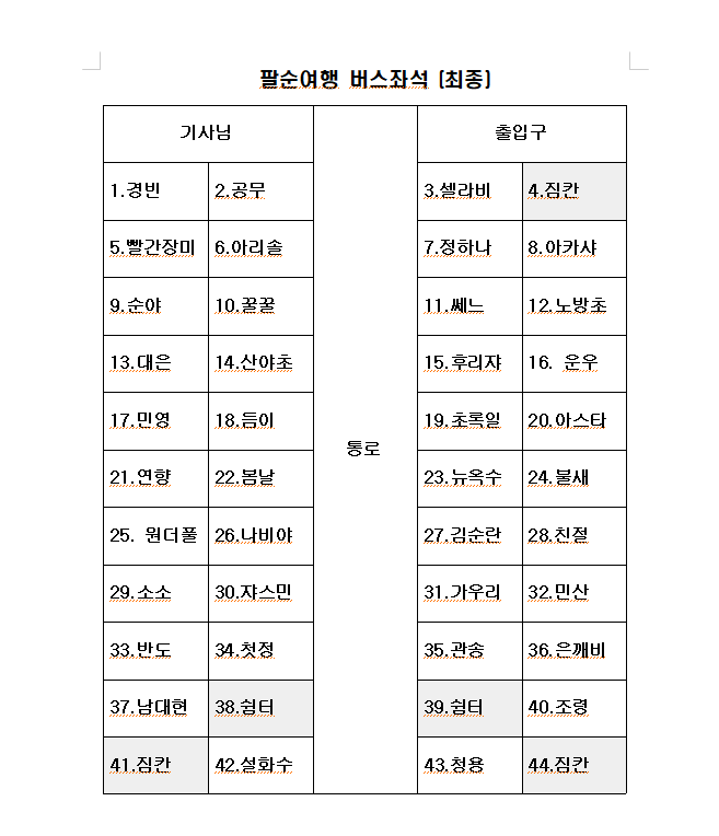 있어 회원님들의 의견을 수렴, 3일동안 고정좌석으로 확정하겠습니다.