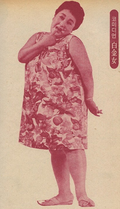 뚱뚱한 사람이 드물던 그 시절에 화끈한 입심과 모습만 봐도 웃음을 자아내게 했던 백금녀 씨