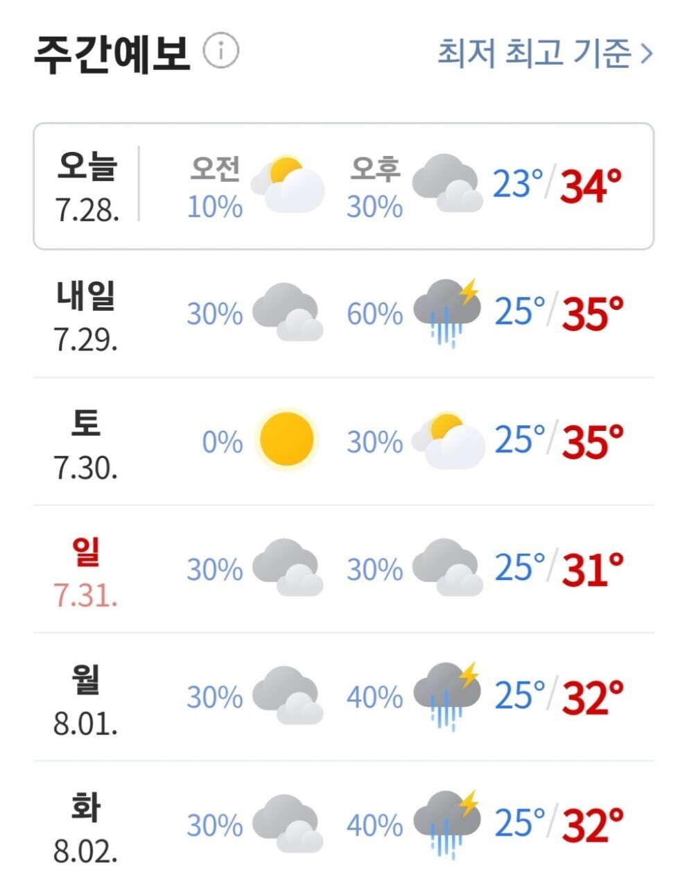 ✫수원(☁️)➠(☀) 25℃ ~ 35℃
