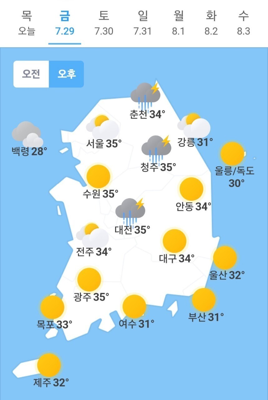 ✫대전(☀)➠(⛈) 25℃ ~ 35℃