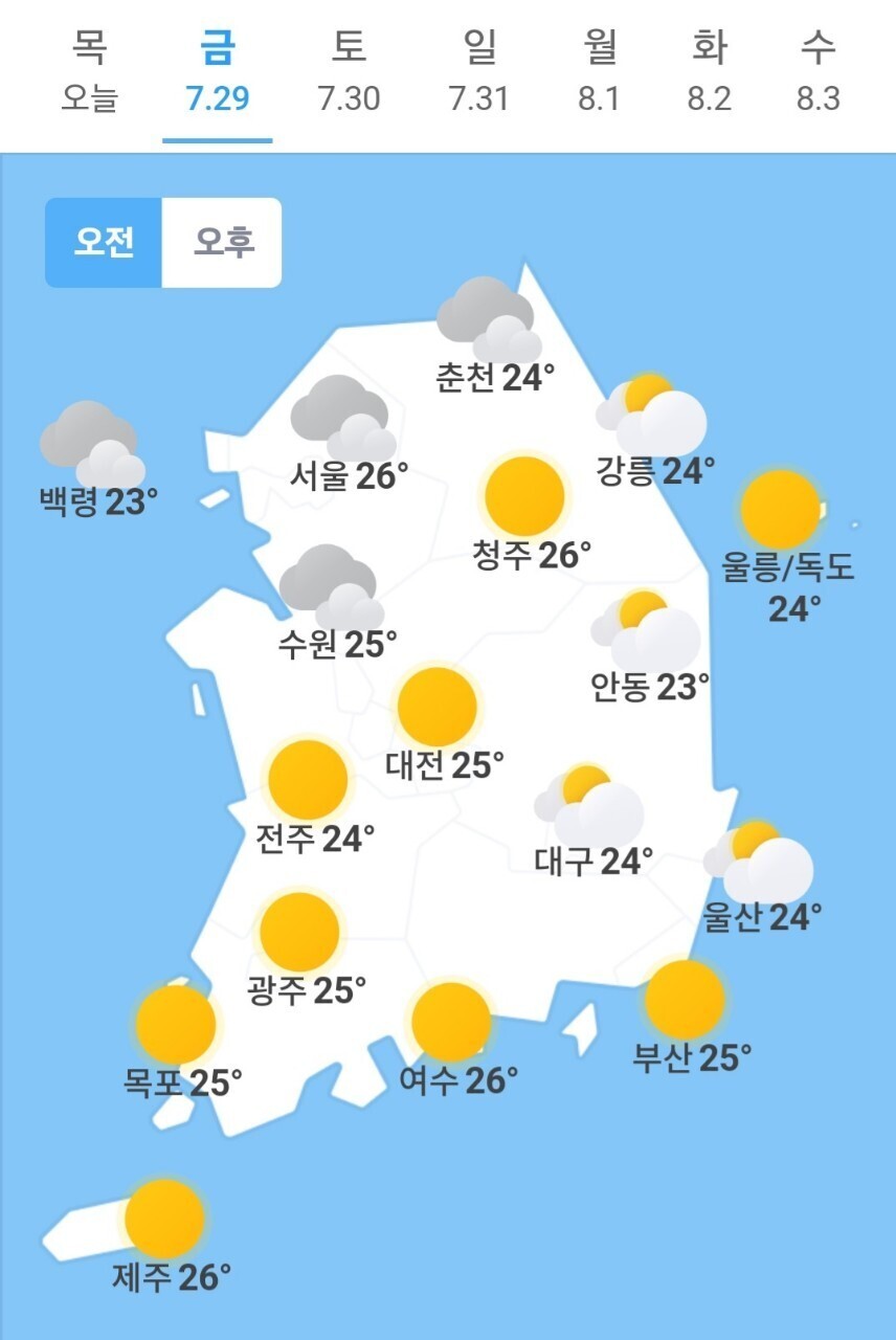 ✫청주(☀)➠(⛈) 26℃ ~ 35℃