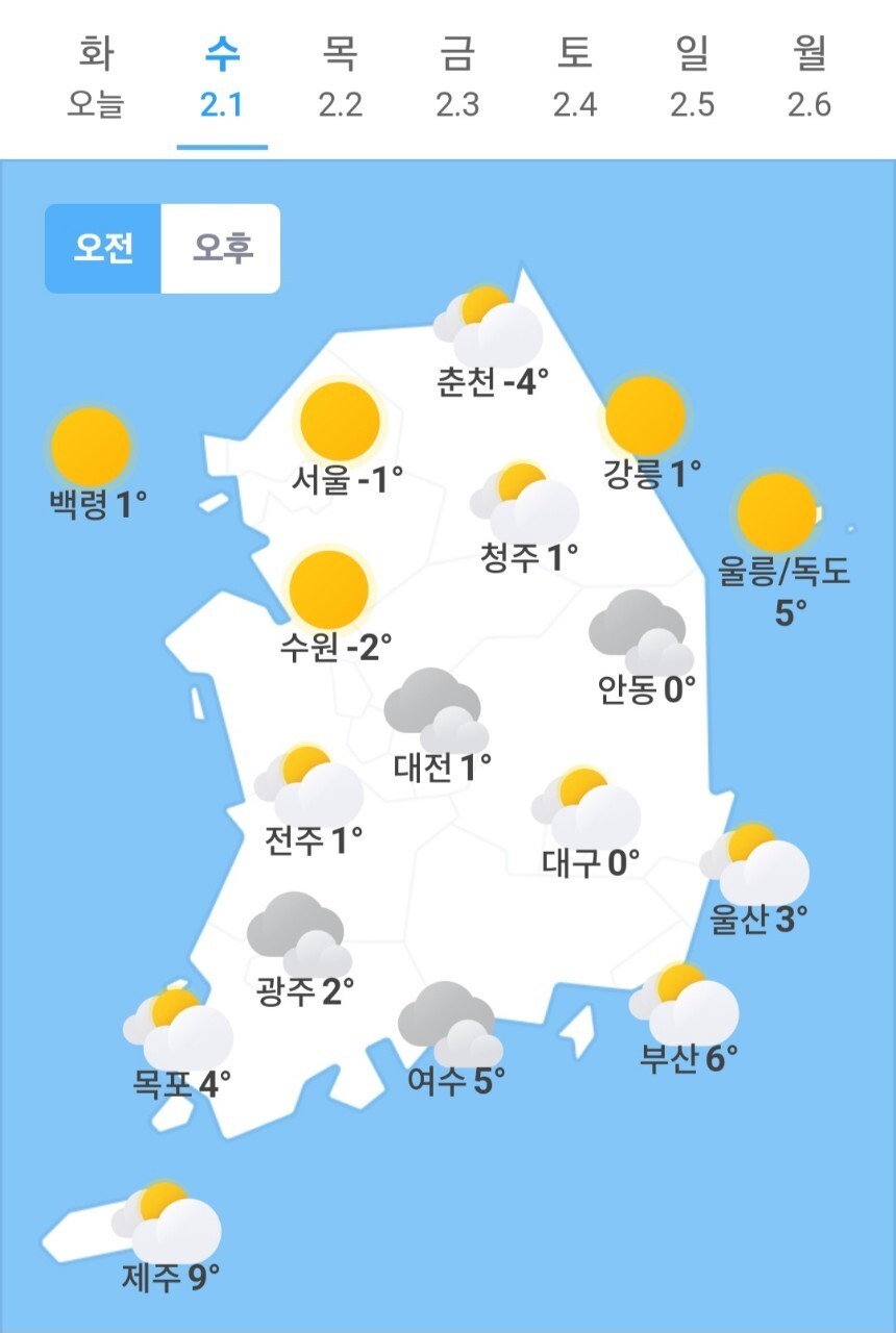 ✫수원(☀)➠(☀) -2℃ ~ 4℃