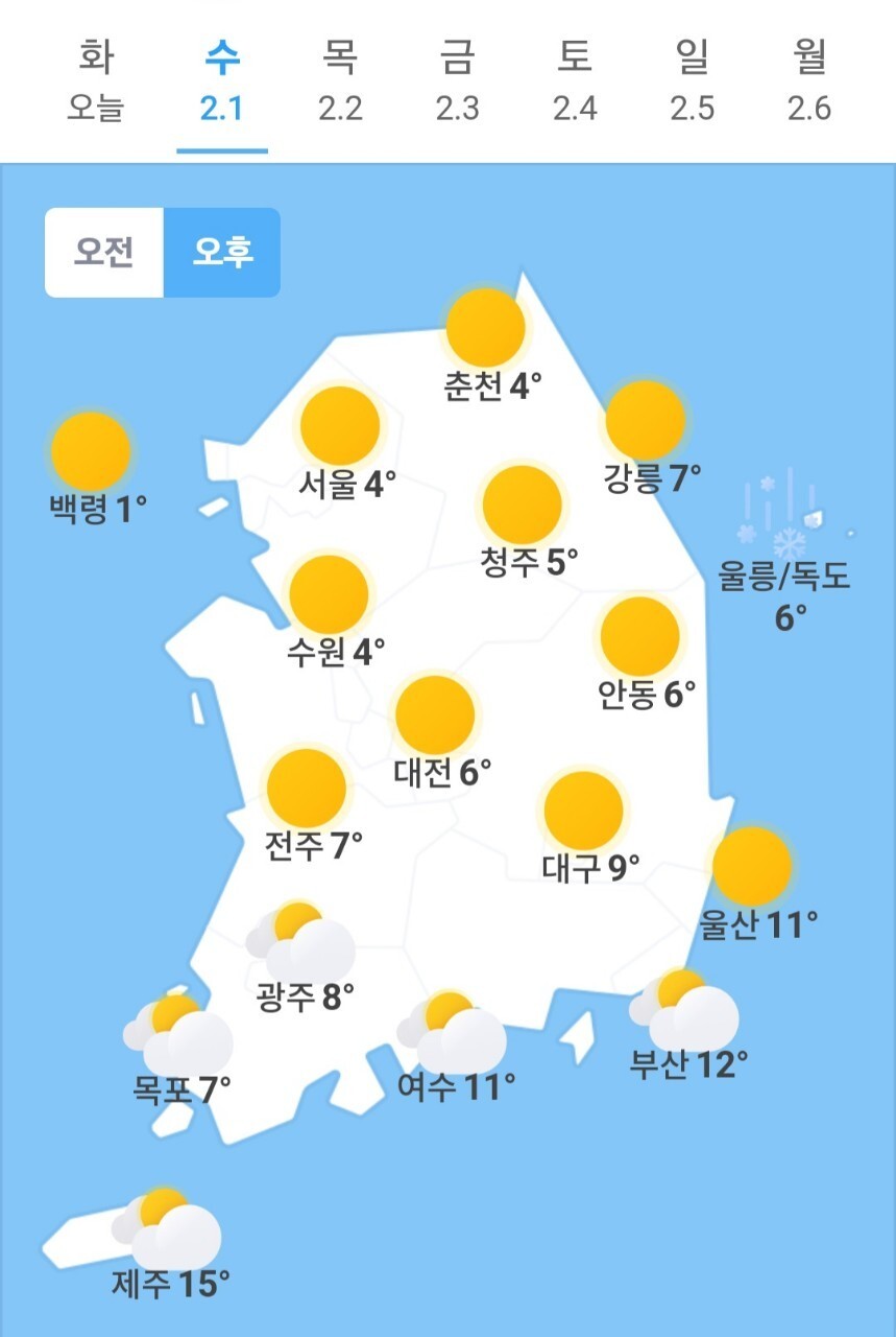 ✫대전(☁️)➠(☀) 1℃ ~ 6℃