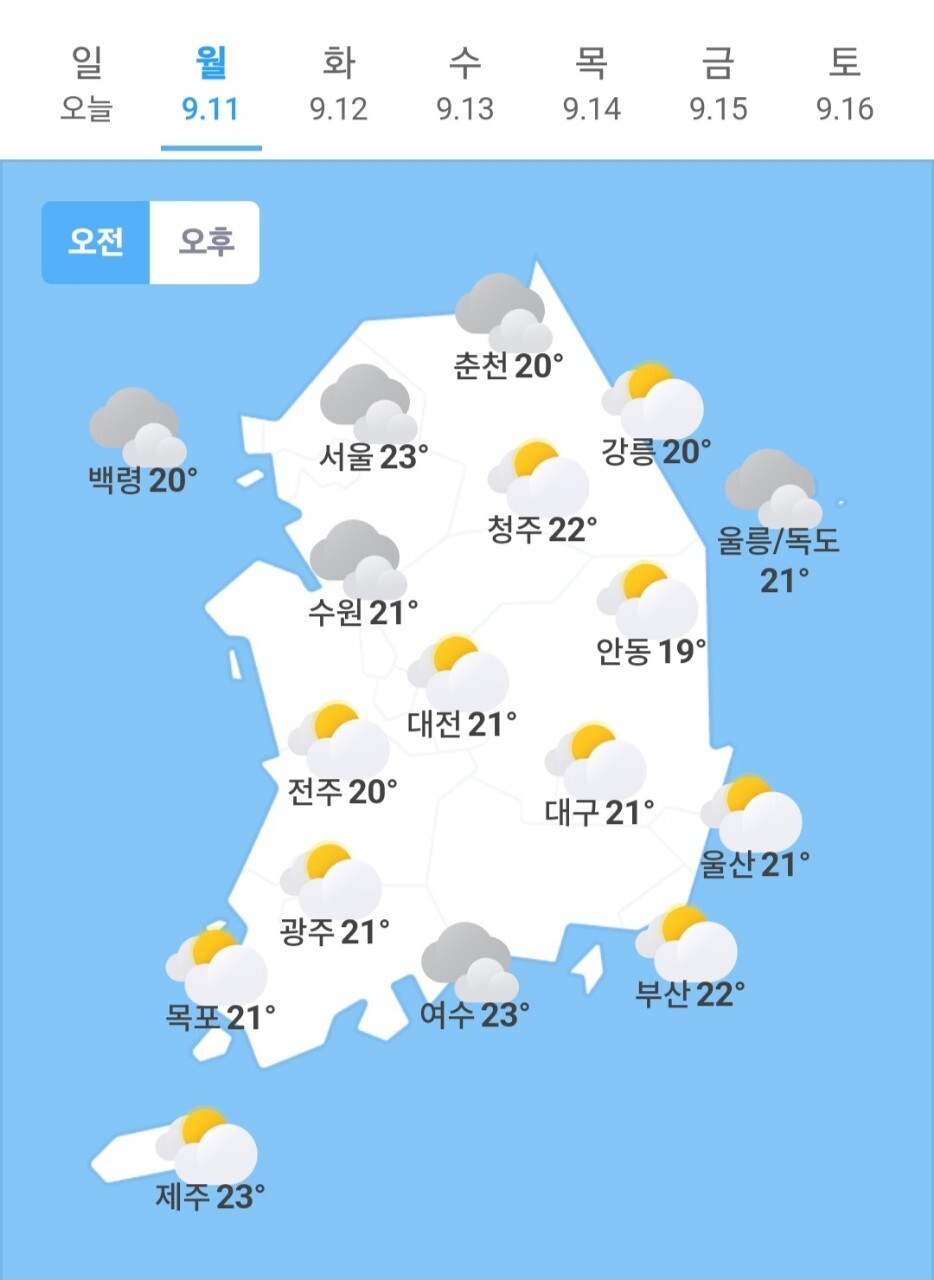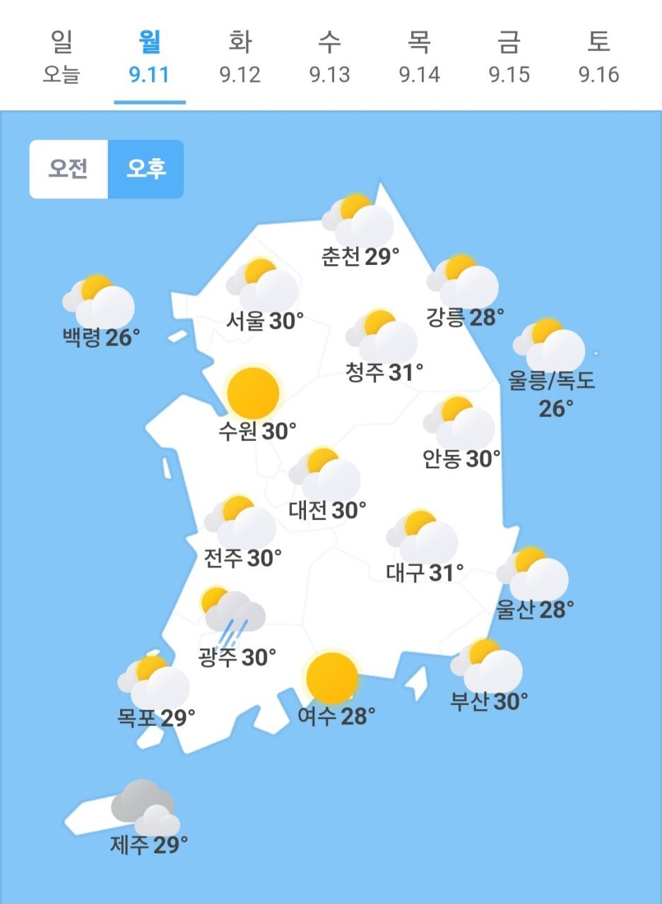 ✫수원(☁️)➠(☀) 21℃ ~ 30℃