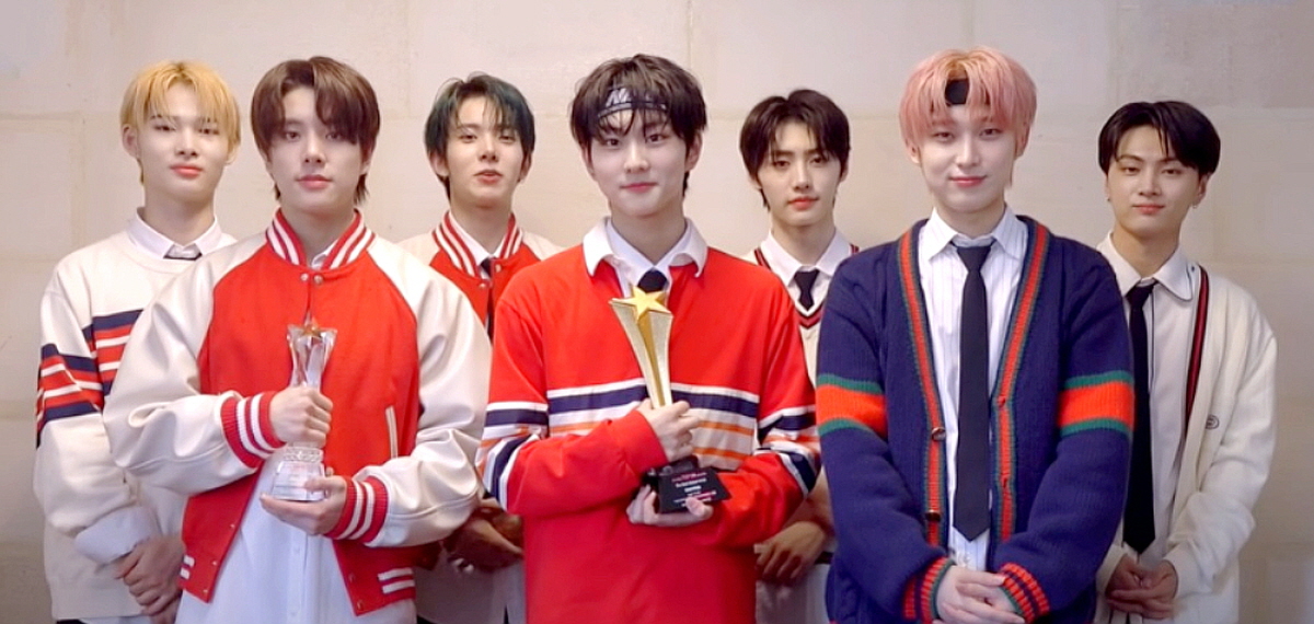 Members of Enhypen waves to the crowd