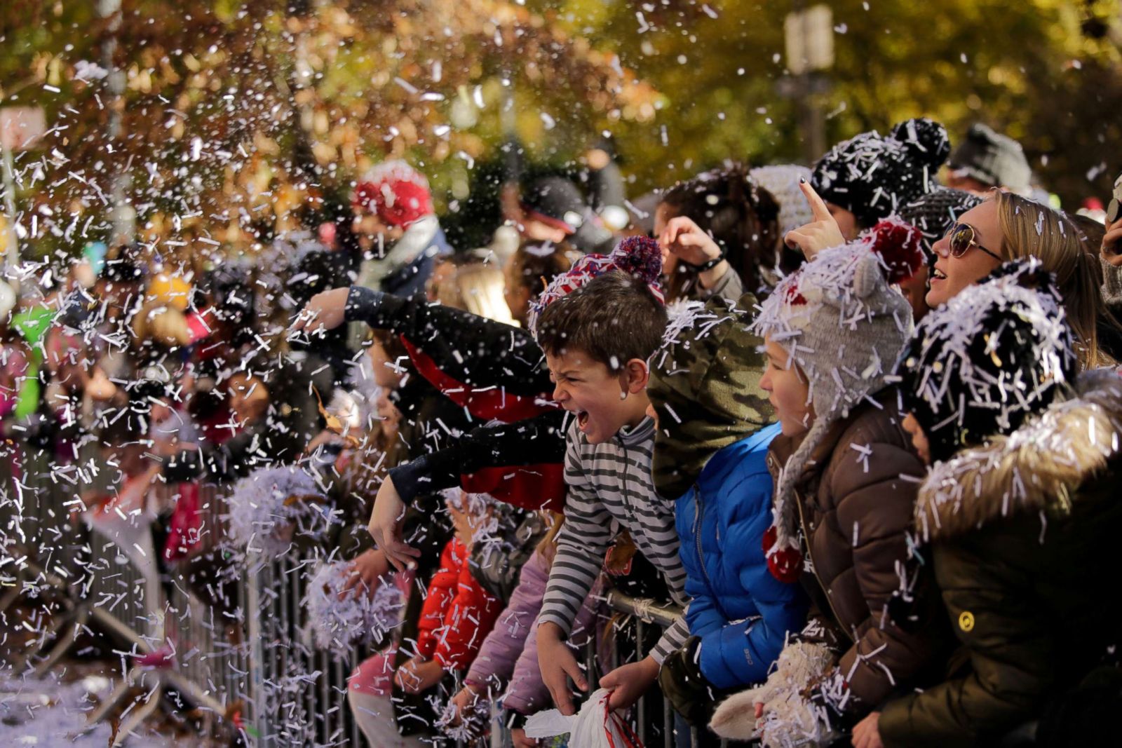 추수감사절 당일 오전 8:30경에 메이시스 추수감사절 퍼레이드가 77th Street 센트럴파크 서쪽에서 시작됩니다.