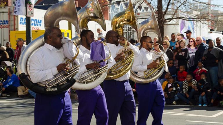 7번가(7th Avenue)와 파인 스트리트(Pine Street)에서 퍼레이드가 시작하기 전 아침에 시내로 나가 보세요.