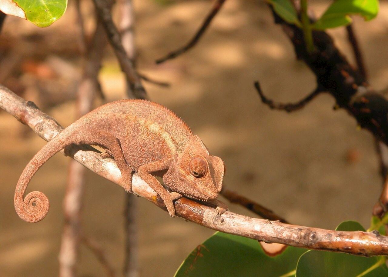 왼쪽부터 시계 방향으로: 1) 주변 환경과 조화를 이루는 칼라가 달린 나이트 항아리 Chrisitan Boix, 2) 찾기 어렵고 멋진 헬멧 vanga Christian Boix; 3) 도마뱀붙이 (Phelsuma 종) Christian Boix; 4) 마다가스카르 참새 매 © 데보라 조던