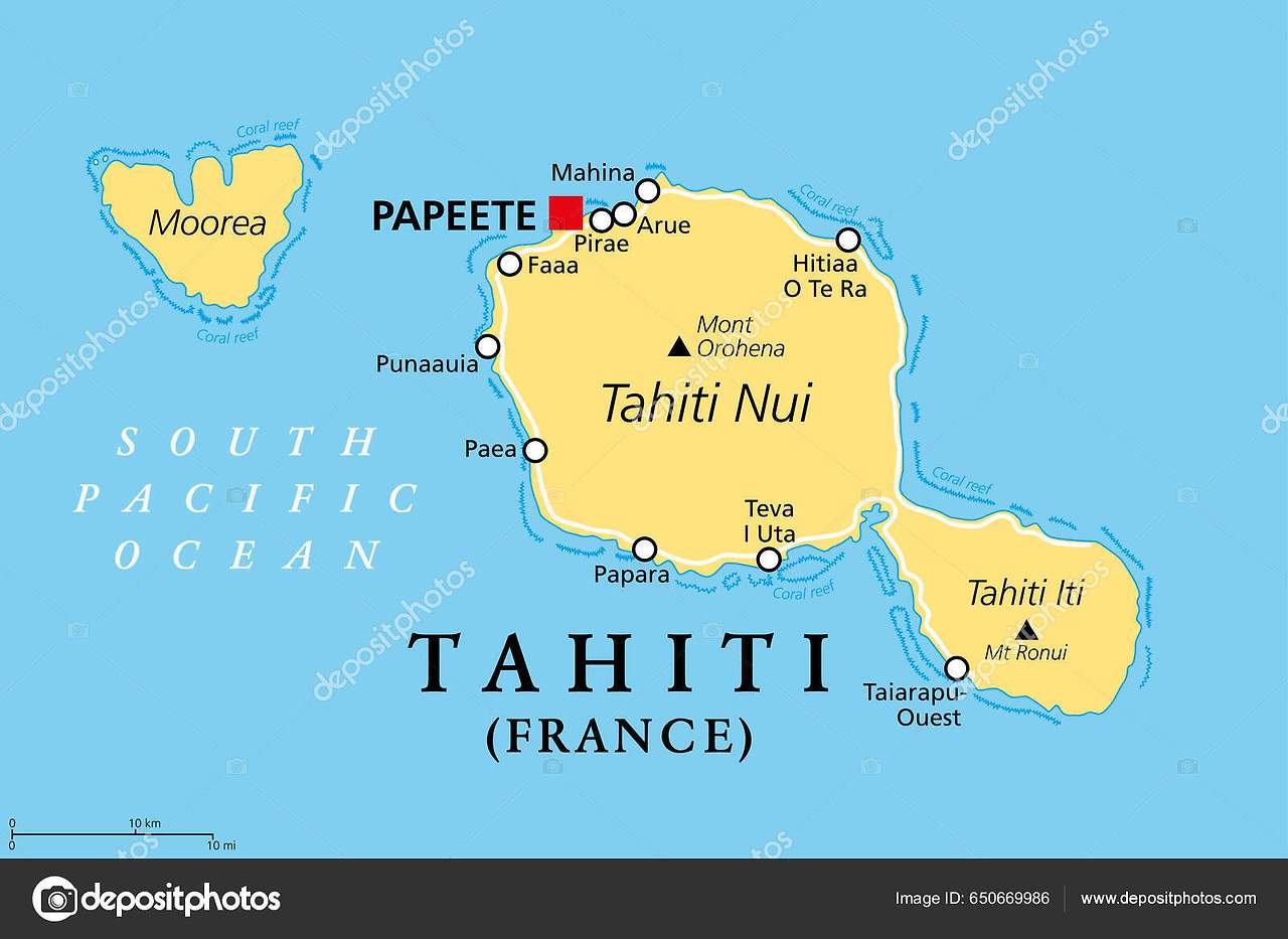 남태평양 중부에 있다. 원추형 화산인 타히티누이와 타히티이티(타이아라푸 반도)가 타라바오 지협을 사이에 두고 있다.
