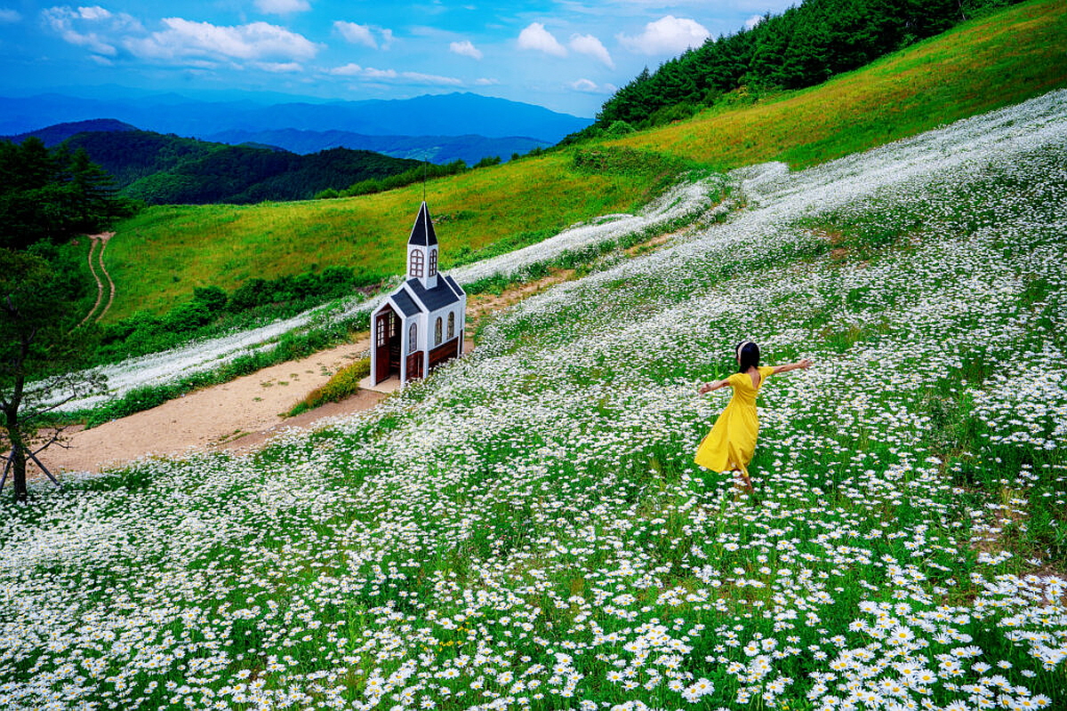'끝없이 펼쳐진 샤스타데이지'…평창 청옥산 육백마지기